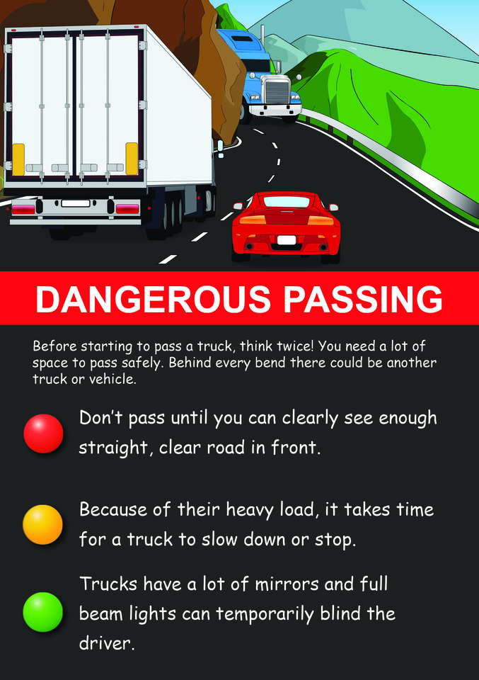 On this page you will find all of the safety messages that are promoted in the Share the Road with Big Trucks program, displayed throughout the Safety MAN Road Safety Truck, and featured in the take home booklet.