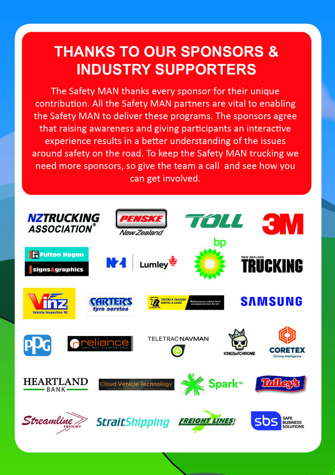 This program and the Safety MAN Road Safety Truck would not be possible without the support from these fantastic industry sponsors. Be sure to thank and support them whenever you can.